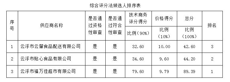 1.成交供應商名稱:云浮市福萬佳超市有限公司